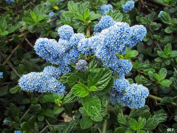 (California Lilac) Evergreen shrub, fast growing to 3-5’ tall and 8-10’ spread. Incredible blue flower clusters in profusion May>June make this a lusted after selection. Deer, drought, gopher resistant, enjoys coastal conditions, shorter lived inland…full sun, sandy soils, resents pruning. Butterfly and hummer magnet.