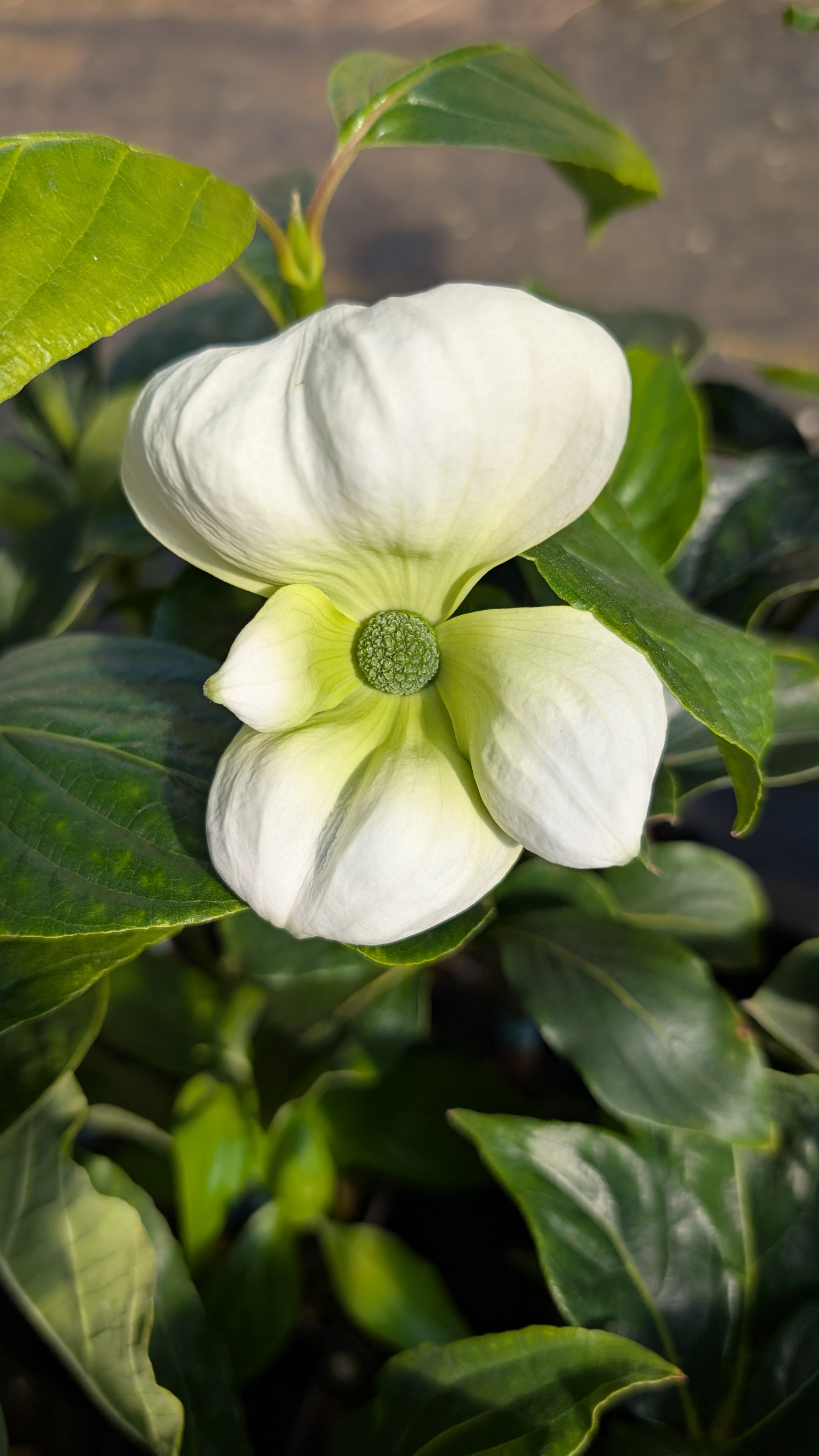 This giant Pacific Dogwood is deciduous tree 30-40’ tall spreading 15-30’ wide with HUGE white spring flowers that can reach 8” wide… often repeating in fall. Flowers are followed by large red-orange fruit. Pink/red/yellow tones are pretty on fall foliage. This species is prone to dogwood anthracnose but easily overlooked with this selection! Best planted in part shade in average soil, moderate moisture.