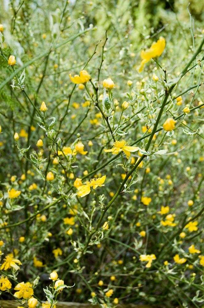 We lusted after this one for a long time! Pretty arching shrub to 5’ with a light & airy look – soft leaves have bright white edges – bright yellow flowers in mid spring sun to light shade – avg soil, water – fits in narrow spaces, corners, against walls, on a trellis or in a pot. Always a space for this well mannered beauty!