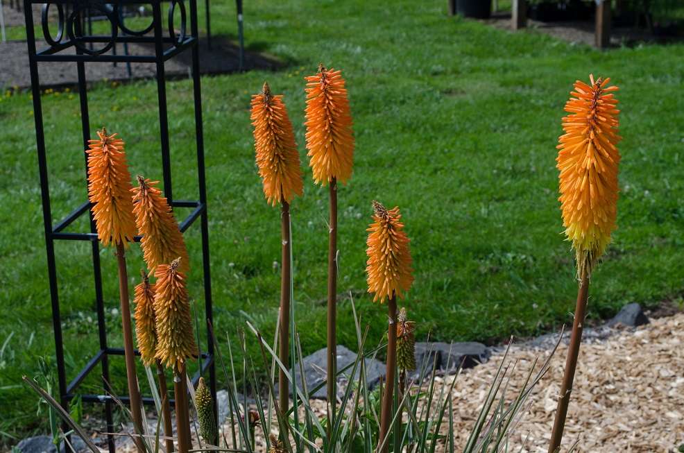 Narrow, grassy green foliage on this clumping perennial, 2' high and 3' wide; summer spikes, 3' tall with warm yellow orange flowers last a very long time and create hummer traffic jams! Vigorous, drought tolerant, deer resistant…grows in most soil, but well drained is ideal; full sun and heat make it happy. Very drought tolerant when established.