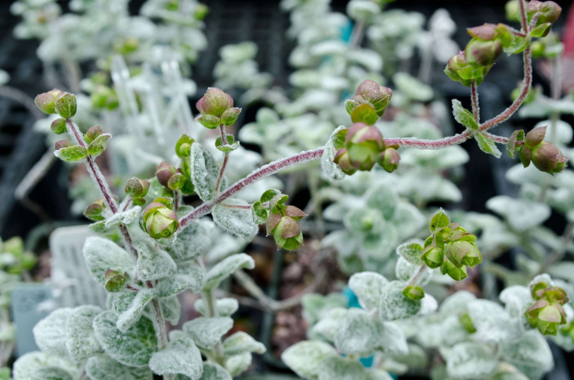 An artful, ornamental oregano…soft fuzzy aromatic whorled foliage wraps the stems forming 6-9” mounds, eventually 12” wide. In midsummer, rosy mauve bracts form at terminals resulting in quite a display! Excellent in a terra cotta tall tom pot…in a dryish corner of the garden, the rock garden or atop a stone wall. Dislikes humidity. Plant where you can appreciate its cascading habit and see the flower show up close! Dried flowers!
