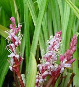 Unusual and rarely offered this evergreen perennial looks like a large leafed Mondo Grass, but will cover the ground faster! Nice ground cover in open woodland or around shrubs, prefers moist shade but will take more sun if it gets enough water. 3-8" tall, spreading; light pink flowers followed by red berries; glossy, rich foliage. Also performs very well in containers.