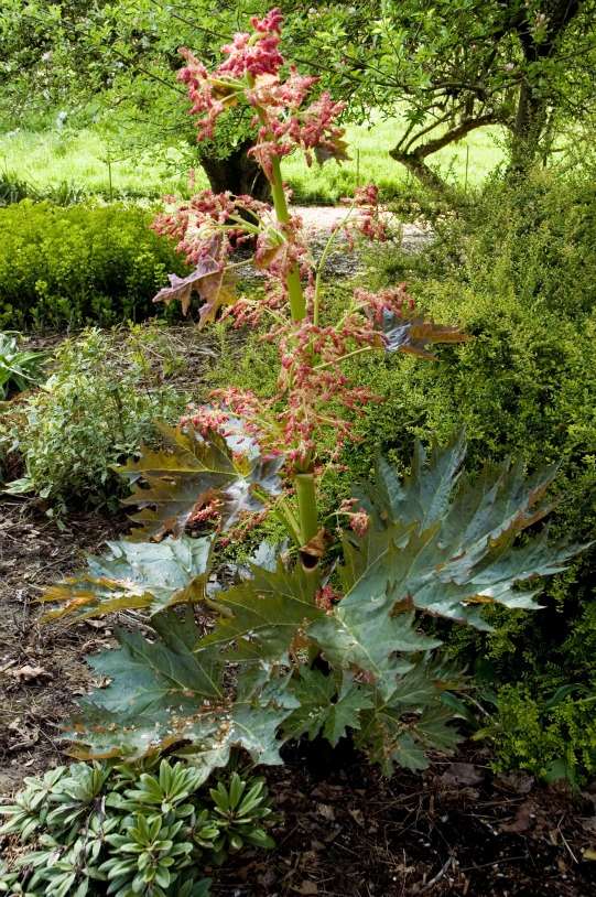 BIG, Bold & beautiful divided leaves often emerging bronze red; phallic red-pink flower stems pierce the air in July, exploding into airy maroon panicles! Deep, rich moist soil, mulch, light shade – to 6' tall & 5' wide. AWESOME!!!
