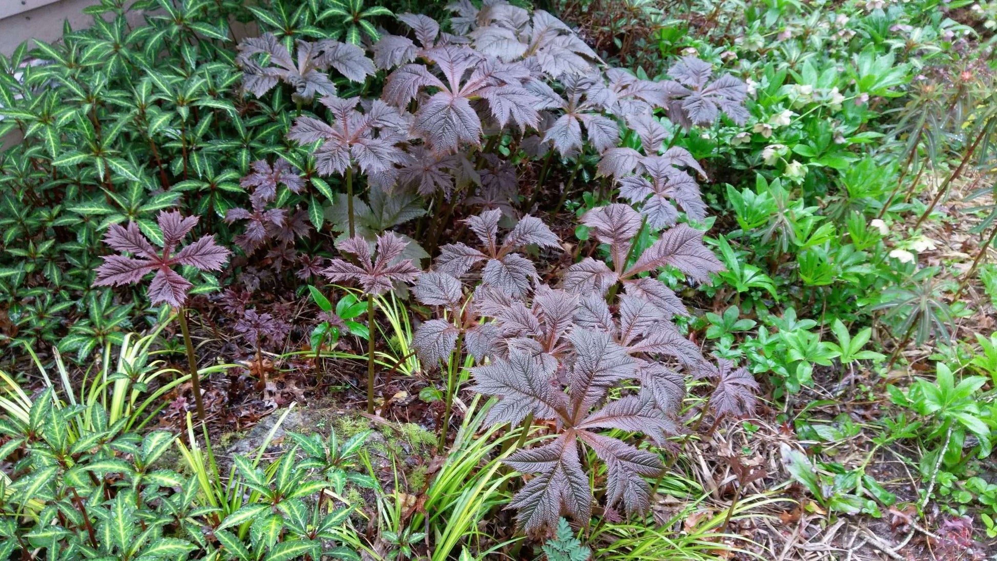 Outstanding selected seedling from Bellevue Botanical Garden in Washington – Jagged edged leaflets emerge in burnished copper hues, panicles of frothy pink flowers in early summer – customers love the big bold leaves on this 3’ plant! This living sculpture prefers a cool, moist location where it will not have to fight greedy tree roots – morning sun or bright shade for best leaf color – Slow to propagate and RARE!